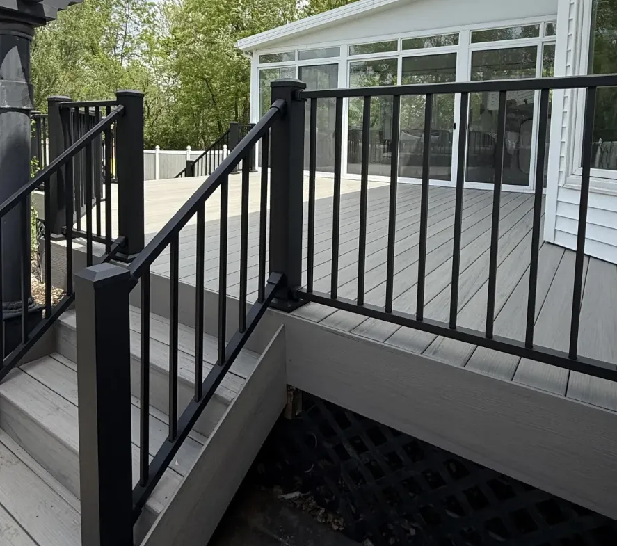 Railings and stairs balance form with function. Railings provide safety by preventing falls and offer opportunities for personalizing your deck's look. Stairs must meet precise standards for riser height and tread depth according to local building codes. We never cut corners on safety because improper dimensions risk injury and can invalidate insurance claims.